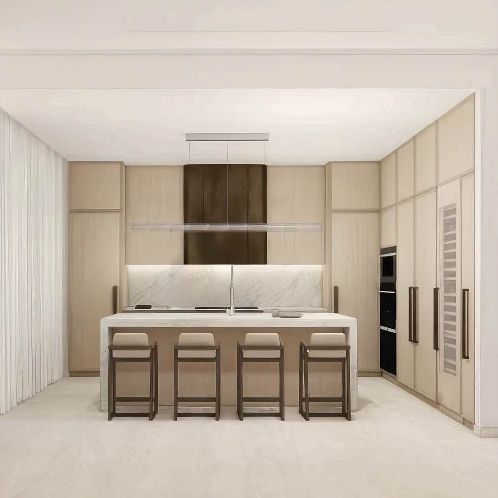 Gabinetes europeos personalizados con electrodomésticos Gaggenau de alta gama para una experiencia culinaria excepcional y sofisticada.